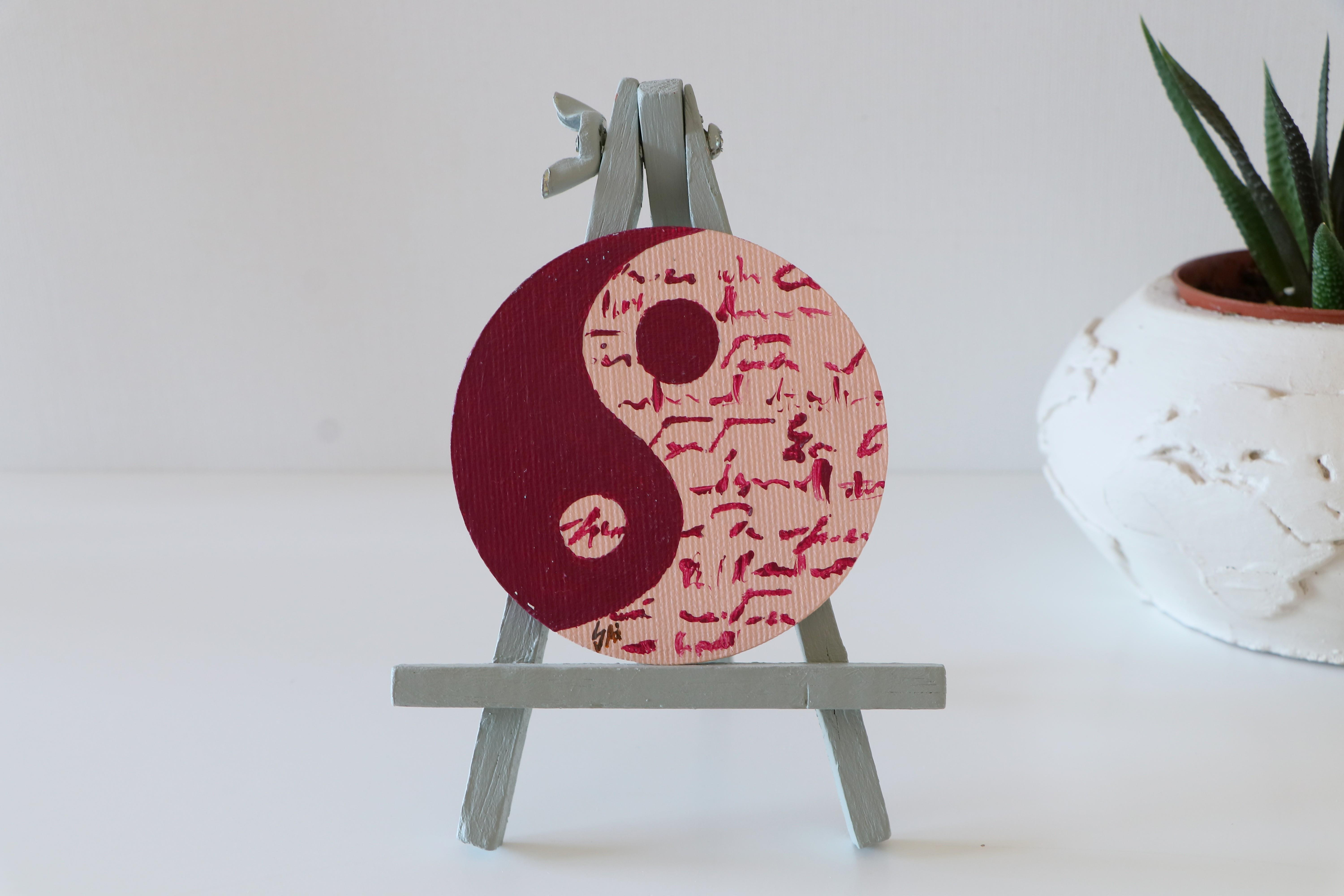 Duralit Üzerine Akrilik Boya Resim - 8 cm Çapında - Resim + Şövale Bir Arada - Desen:5