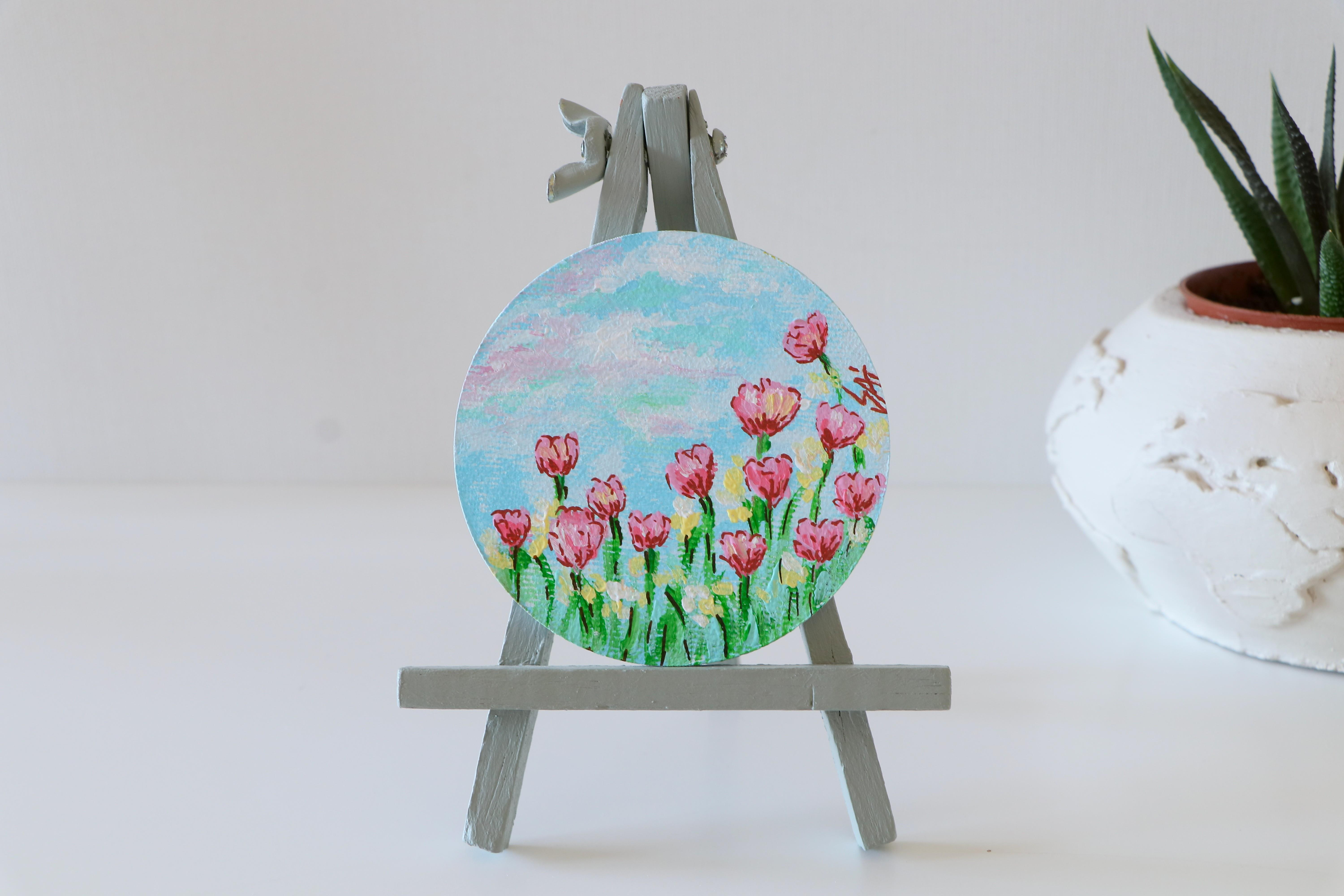Duralit Üzerine Akrilik Boya Resim - 8 cm Çapında - Resim + Şövale Bir Arada - Desen:7