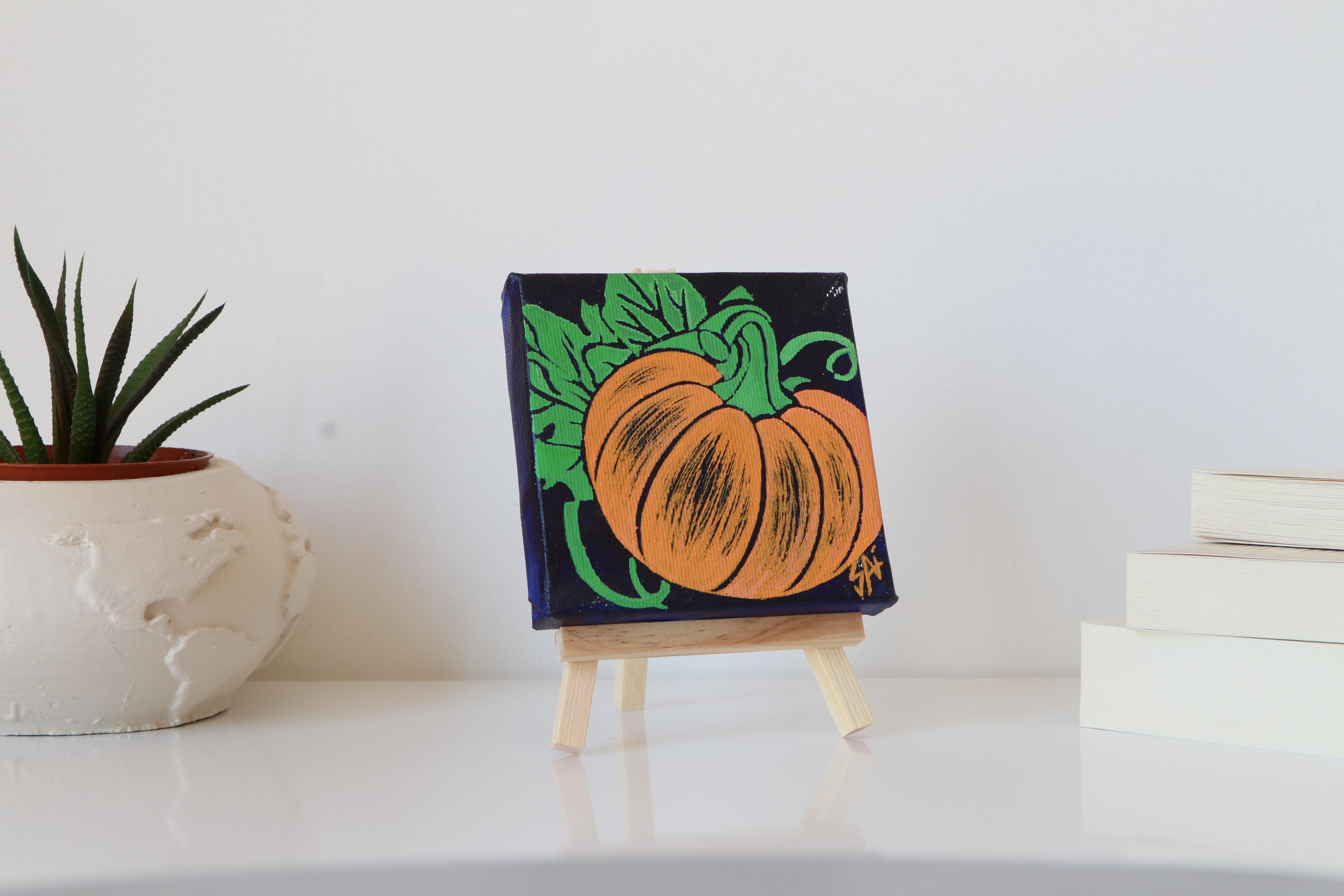 Tuval Üzerine Akrilik Boya Resim - 10 cm x 10 cm - Resim + Şövale Bir Arada - Bal Kabağı