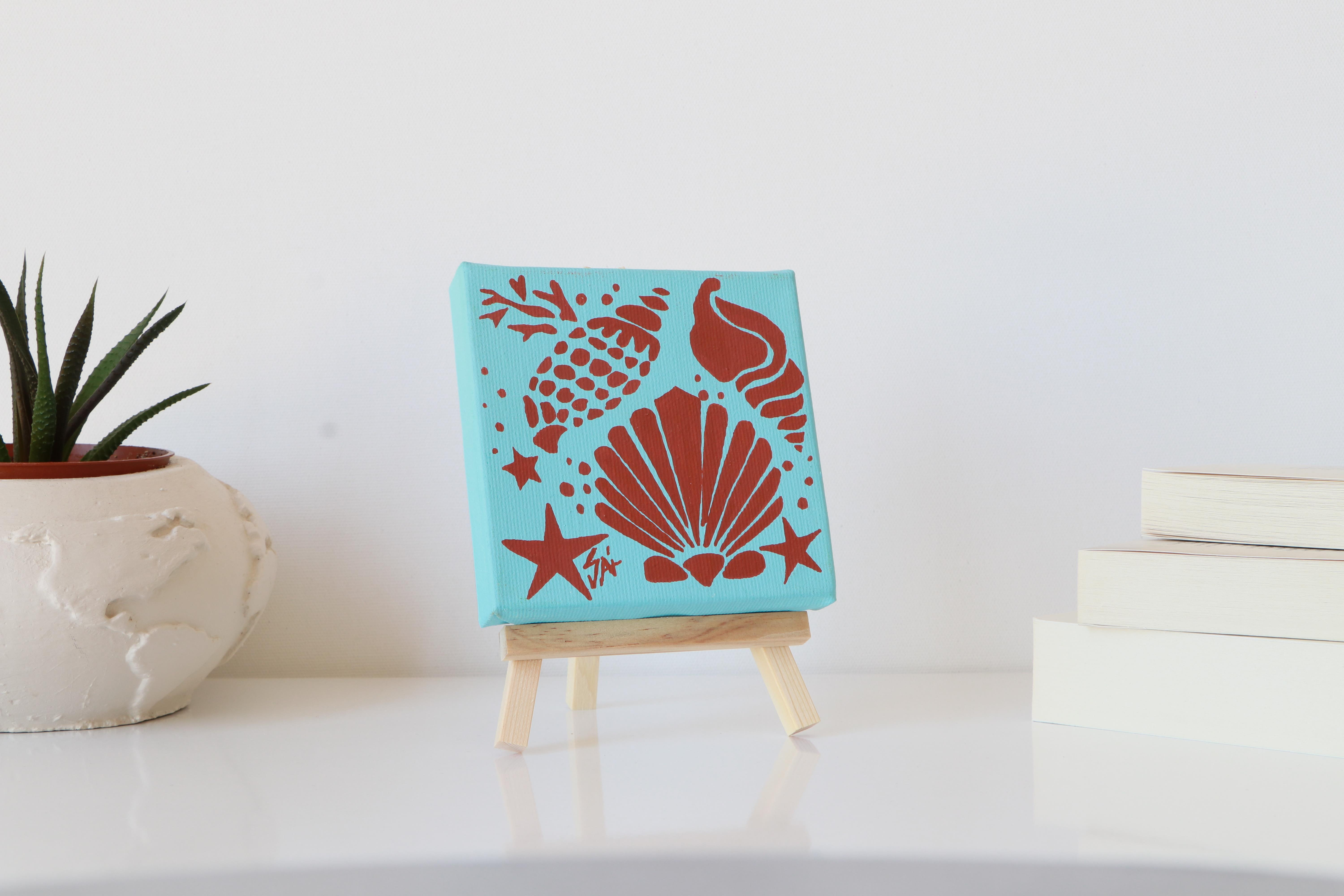 Tuval Üzerine Akrilik Boya Resim - 10 cm x 10 cm - Resim + Şövale Bir Arada - Deniz Teması - 2