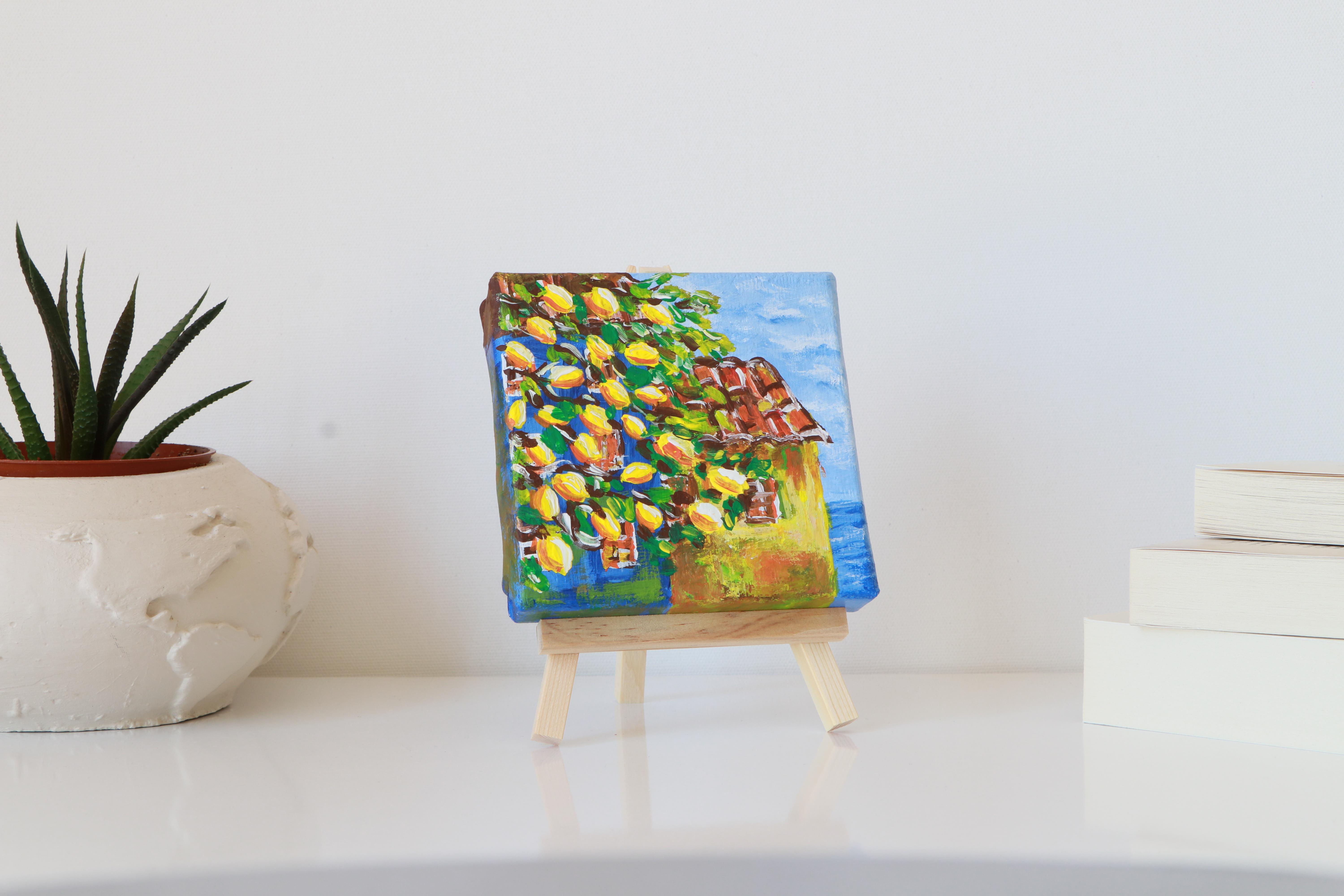 Tuval Üzerine Akrilik Boya Resim - 10 cm x 10 cm - Resim + Şövale Bir Arada - Ev ile Limonlar