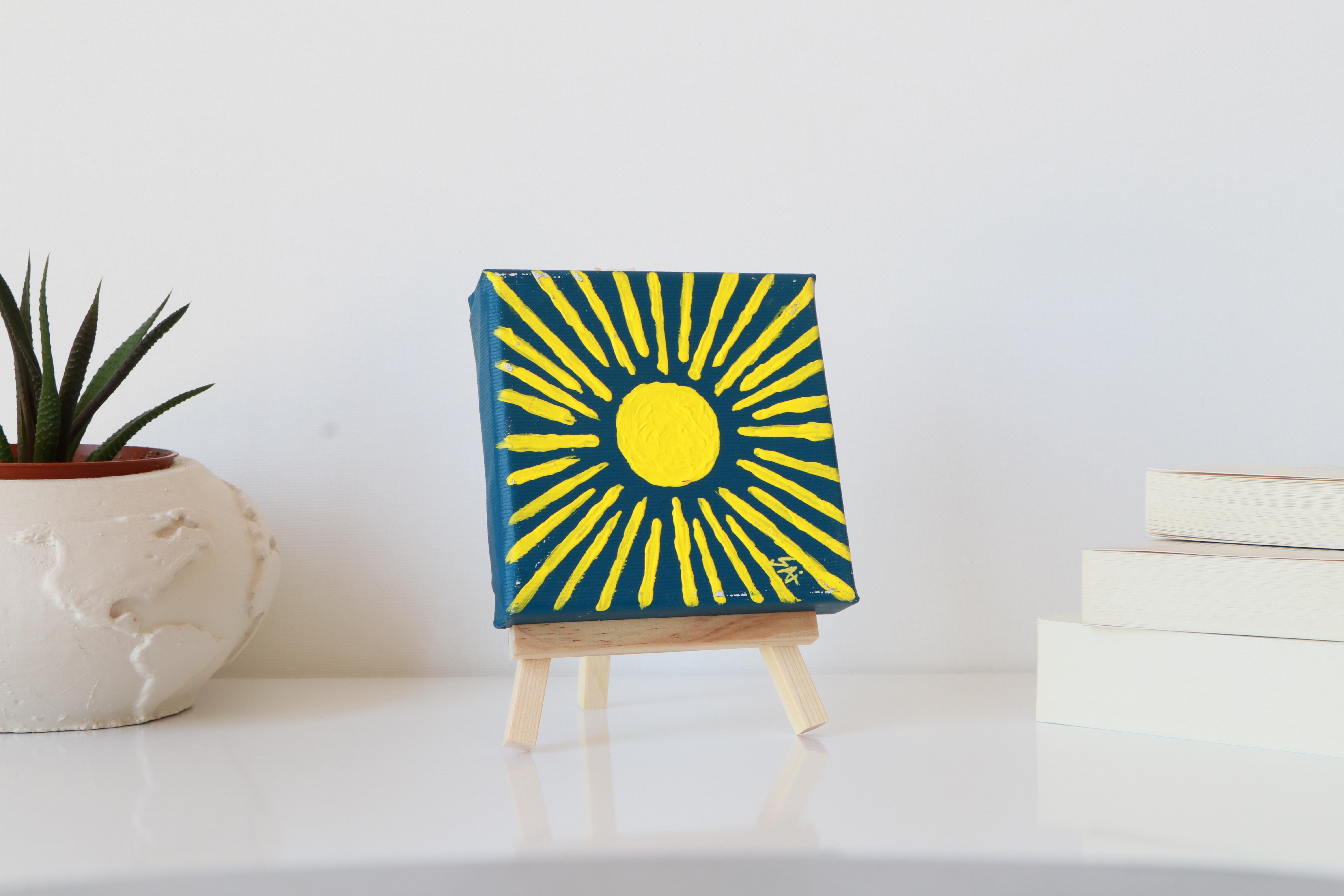 Tuval Üzerine Akrilik Boya Resim - 10 cm x 10 cm - Resim + Şövale Bir Arada - Güneş Teması