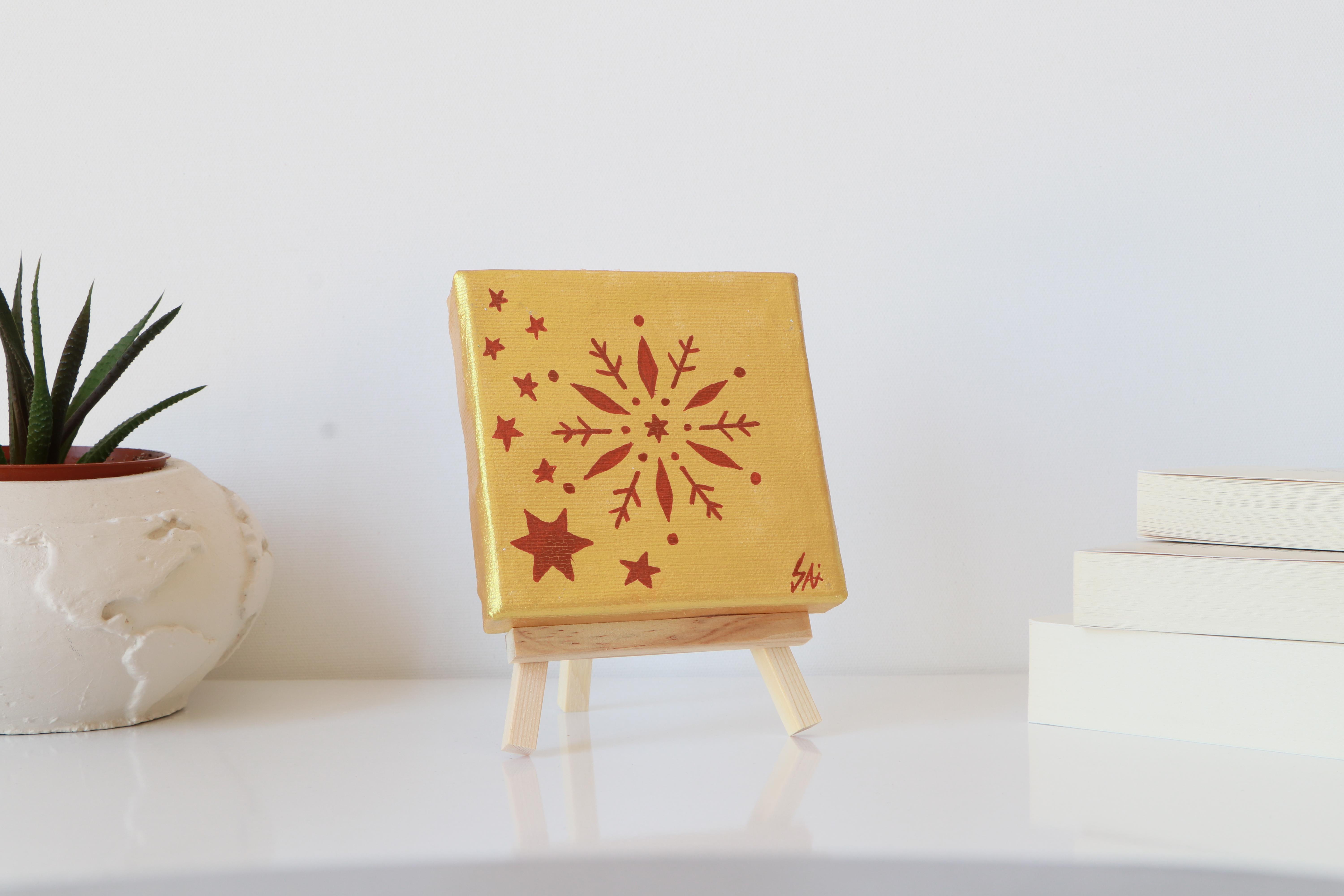 Tuval Üzerine Akrilik Boya Resim - 10 cm x 10 cm - Resim + Şövale Bir Arada - Yeni Yıl Teması - 1